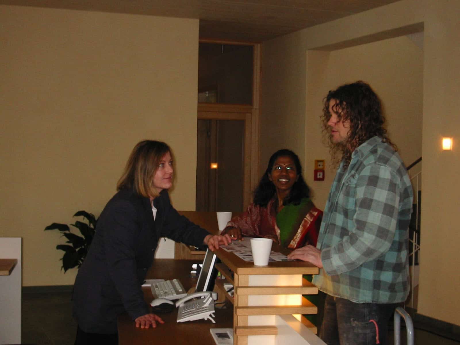 Unsere erste Mitarbeiterin Marion Hofmann sitzt ab 14. November an der Rezeption – und tut dies bis zum heutigen Tag.